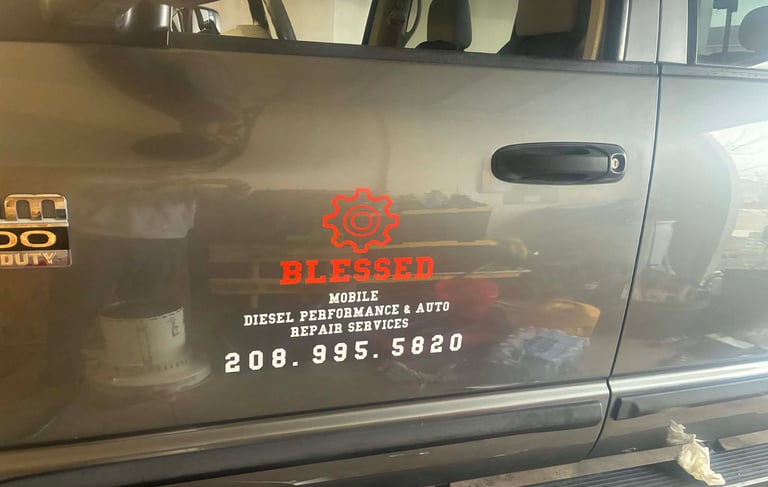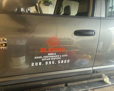 We completed a custom 23" x 10" logo decal installation for Blessed Repairs, applied to both front doors of their work truck. With our same-day service and fast turnaround, they were back on the road quickly with a sharp, professional brand presence.